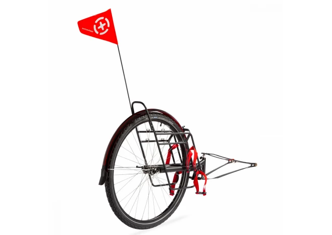 Grâce aux innovations introduites dans la construction du cadre, nous avons également obtenu une poignée pratique pour tenir la remorque. Contrairement à la première version, nous avons prévu la place pour deux sacs de transport, faciles à fixer avec des sangles de compression ordinaires en position verticale devant les sacoches, ce qui augmente non seulement le volume des bagages transportés, mais réduit également le centre de gravité de la charge.