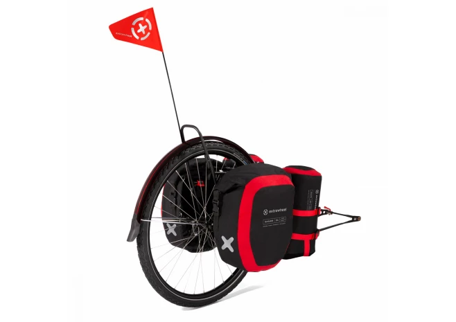 La remorque pour vélo Voyager PRO convient parfaitement aux sacoches de notre entreprise, mais des modèles d’autres marques peuvent également y être attachés par des poignées adaptés au tube standard d’un diamètre de 12 mm. Les sacoches Extrawheel sont fabriquées en cordura original avec des coutures scellées et garantissent résistance et imperméabilité, rivalisant facilement avec les meilleures sacoches du marché.