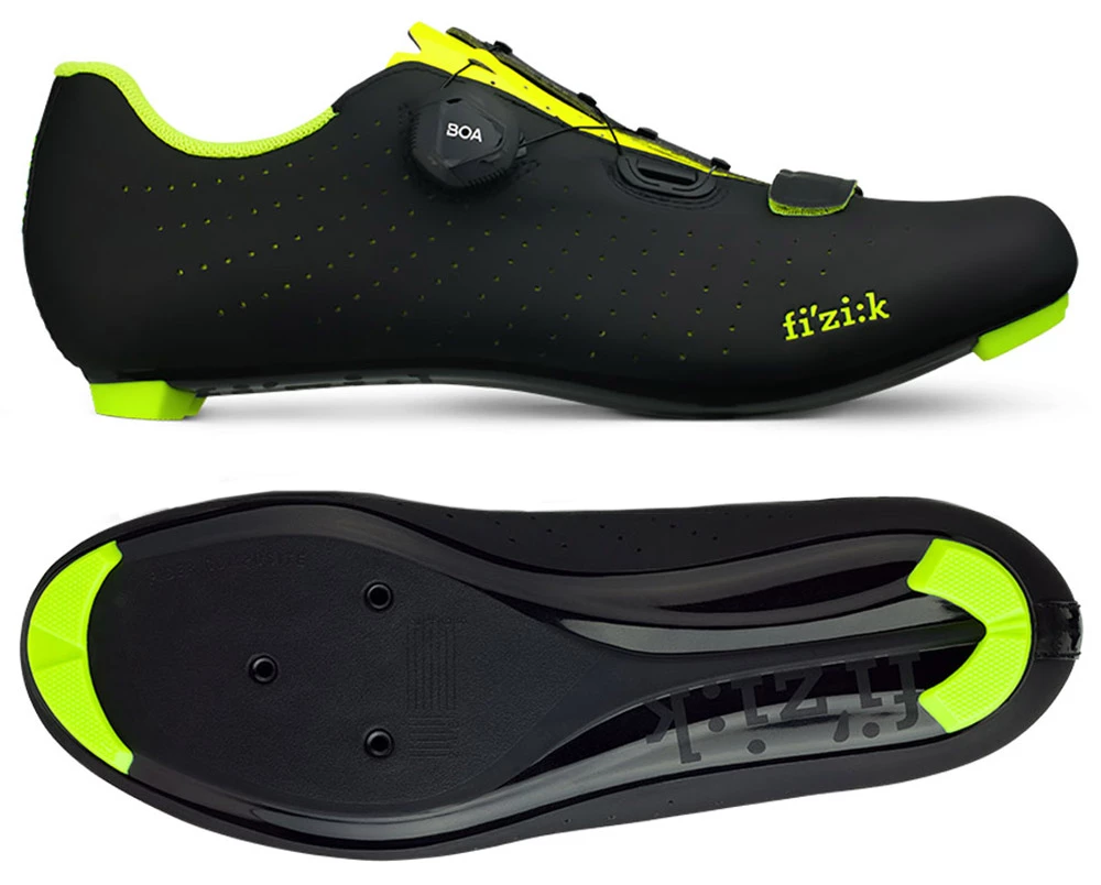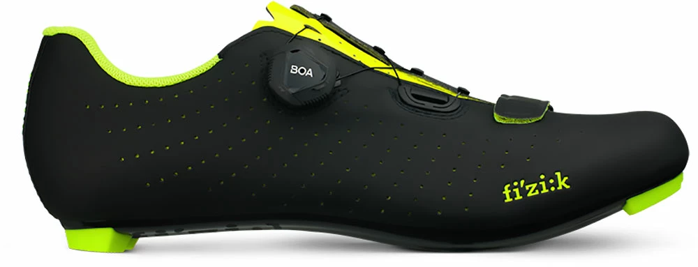 The closure is fast and secure, powered by a micro-adjustable BOA IP1 dial and a Velcro strap for a fine tune fit of the forefoot area. The R5 Nylon composite outsole is supple and comfortable even in the long haul but without compromising pedalling efficiency.