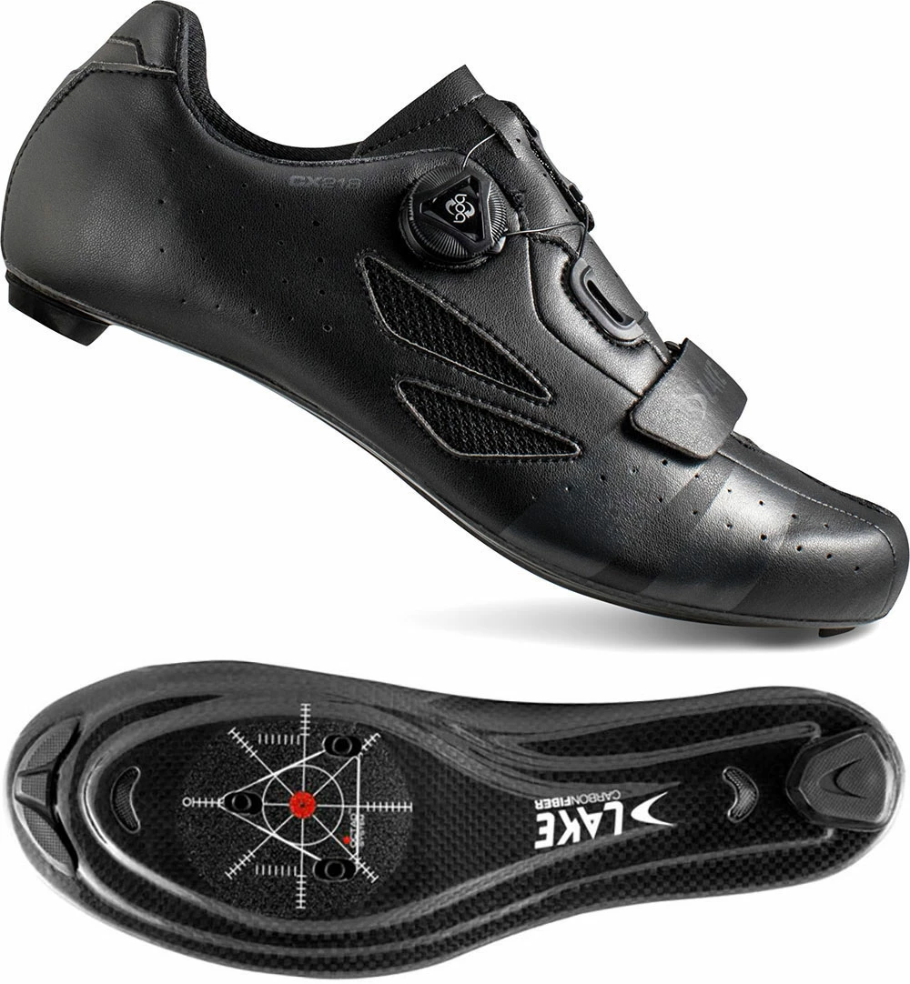 The Lake CX 218 is a road cycling shoe with BOA L6- and additional forefoot strap closure. The soft and leather-like Clarino microfiber upper contributes in combination with the ultra-stiff sole of 100% carbon fiber and Competition Last to a low weight, an incredible fit and high wearing comfort.