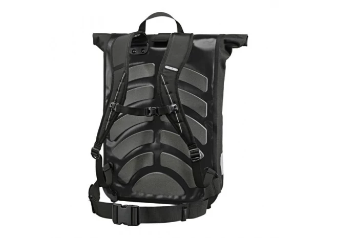 La partie dorsale en mousse, ventilée, ainsi que la ceinture ventrale et la ceinture sternum permettent une assise confortable, avec bonne tenue au corps, un facteur particulièrement essentiel dans les sprints ou en cas de freinage brusque en ville. Une sécurité accrue sur la route – justement en cas de mauvaises conditions météo et à la nuit tombée – est fournie par des bretelles aux contours renforcés de bandes réfléchissantes ainsi que des éléments réfléchissants latéraux.