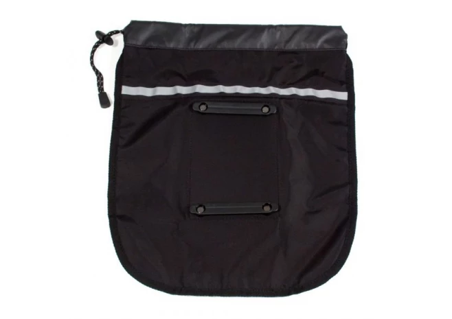 Pliée à plat la poche filet pour sacoche de Ortlieb prend peu d’espace lorsqu’elle n’est pas utilisée.
