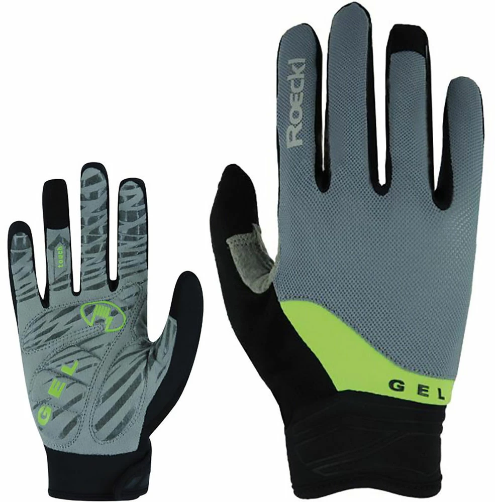 Optimal handlebar control and precise operation of gears and brakes are made possible by the DURASENSE palm with ERGONOMIC CUT, which is as tactile as it is grippy and hard-wearing. And because even in summer the one or other rain shower does not fail to occur, the palm was equipped with ALL-WEATHER-GRIP – for reliable, non-slip grip at all times. Gel gloves are absolute classics when it comes to comfort, accordingly this glove offers gel padding and: seamless padding of the crook of the thumb called COMFORT-INNOVATION (exclusive to ROECKL) – for more riding pleasure and less hand fatigue on long tours. Communicative: thumb and ring finger are TOUCHSCREEN COMPATIBLE. And with the soft-wipe thumb, you can wipe off sweat. Like all ROECKL SPORTS cycling gloves, the MORI can be machine washed at 30 degrees.
