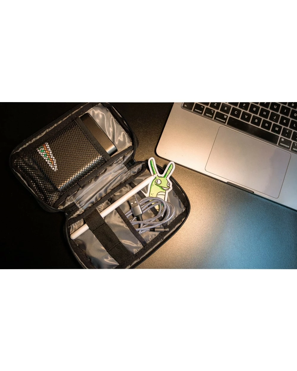 Vous pouvez désormais ranger au même endroit votre chargeur, votre disque dur externe, votre portefeuille, des stylo, petite appareil photo … bref pas mal de petits objets ou accessoires qu’on a l’habitude de jeter au fond d’un sac !