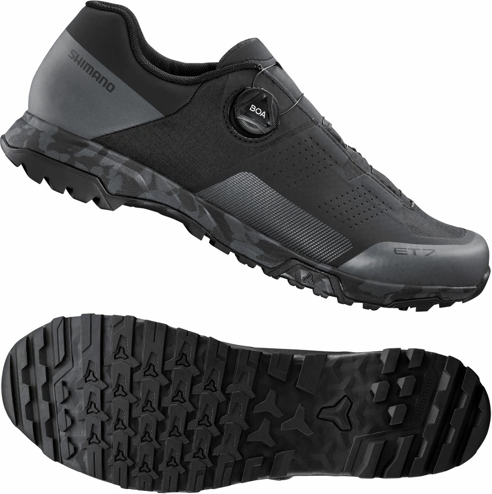 The SH-ET700 is an e-bike shoe with excellent walking comfort and suitable for any weather conditions. The sole with « 360° Traction » block tread offers grip on different pedals and surfaces, which makes it also suitable for trekking.