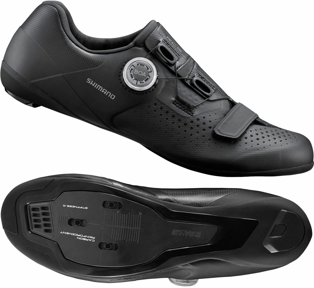 The SH-RC5B road bike shoes safely enclose and stabilize your feet to maximize power transmission. The upper is breathable at a low weight and makes wearing the shoes extremely comfortable.