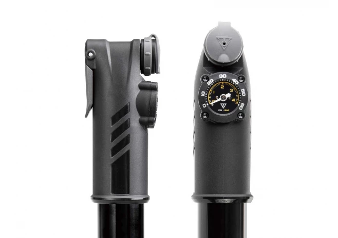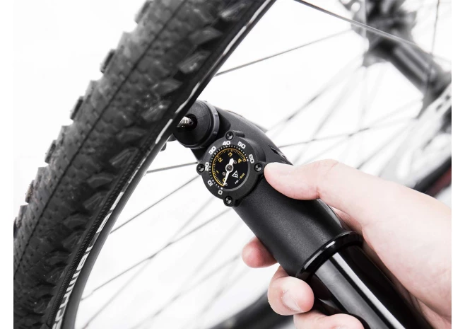 Le Mountain TT G Twin Turbo avec une grande pompe à jauge analogique facile à lire de 1-1 / 8 ”de diamètre intégrée remplit facilement les pneus de gros volume et les pneus de VTT à haute pression. La technologie TwinTurbo utilise les deux courses pour comprimer l’air afin de fournir une sortie haute pression et d’économiser du temps et des efforts. Le capuchon anti-poussière intégré maintient la tête de pompe propre et le levier de verrouillage du pouce assure une étanchéité à l’air.