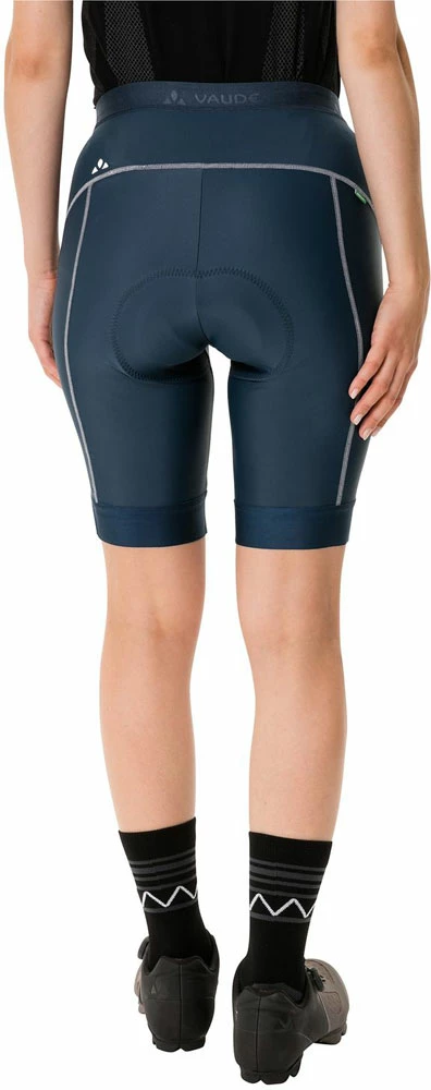 The main material of the women’s cycling pants is made from recycled polyamide, which is obtained in an upcycling process from textile materials, such as used fishing nets. Thus, these pants offer not only maximum comfort on the tour, but also something for the environment. The VAUDE Green Shape label stands for an environmentally friendly, functional product made from sustainable materials.