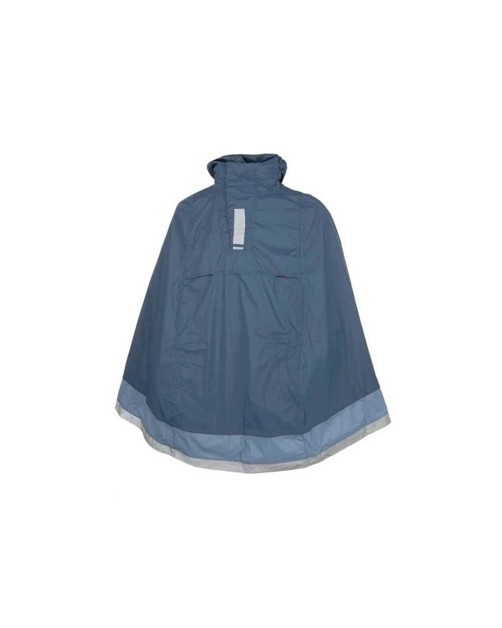 Comme toujours, des éléments réfléchissants sont disposés un peu partout sur la cape de pluie dont une très large sur toute le bas.