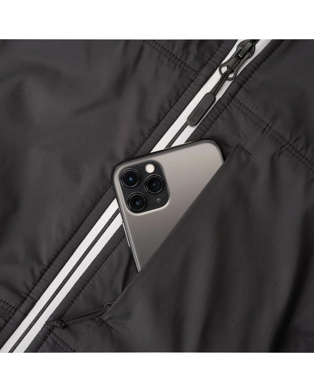 Comme à chaque fois chez Chrome, vous disposez d’éléments réfléchissants pour assurer une bonne visibilité sur la route et le zip avant s’ouvre dans les 2 sens pour adapter la veste à votre utilisation, à pieds ou sur le vélo.